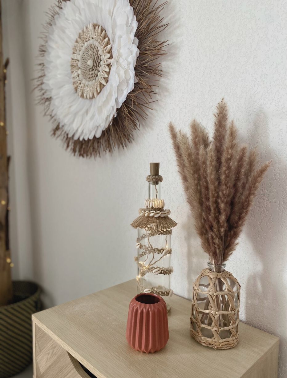 - Corde naturelle tressée : lien entre les éléments, elle apporte de la texture et une finition authentique.